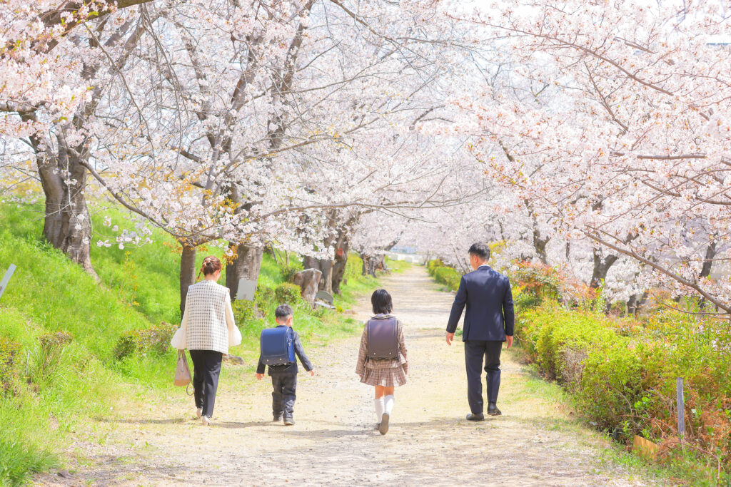 桜の下で、ランドセルを背負ってる子供達を見て成長を感じることができて、なんて幸せで羨ましい家族でしょうか!